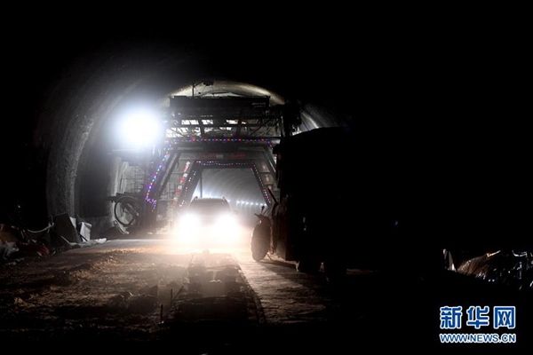 12月25日,中交一公局工程建設(shè)者在濟(jì)陽高速公路穿越太行山隧道內(nèi)施工。 新華社記者 朱祥 攝