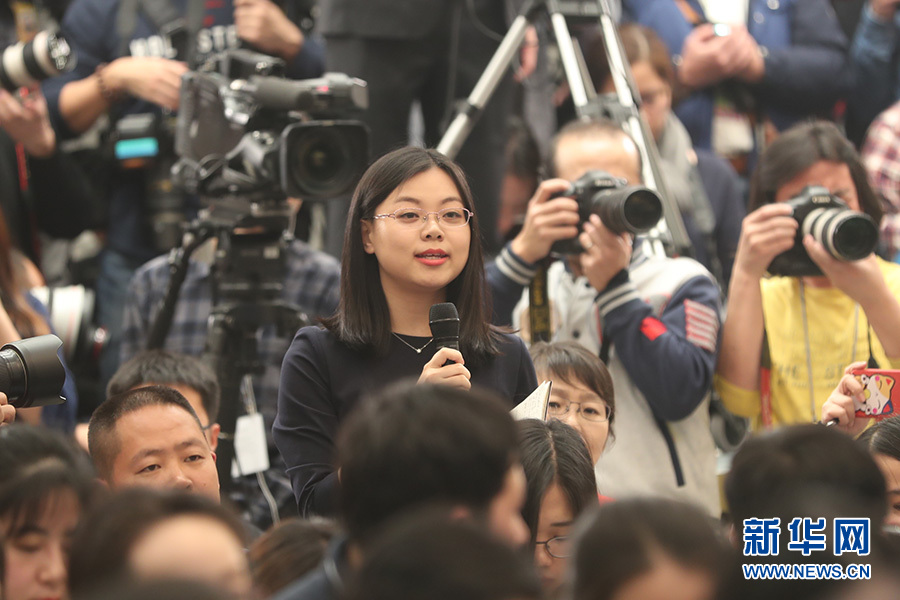 全國政協十三屆一次會議新聞發布會3月2日16:30在人民大會堂一層新聞發布廳召開,大會新聞發言人王國慶向中外媒體介紹本次大會有關情況并回答記者提問。圖為光明日報記者提問。新華網/中國政府網 曲植 攝
