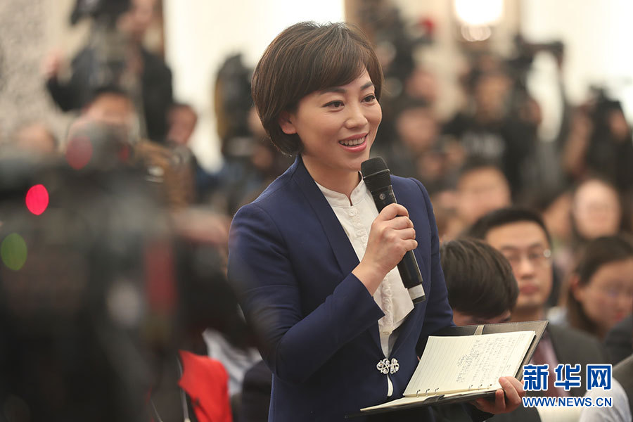 全國政協十三屆一次會議新聞發布會3月2日16:30在人民大會堂一層新聞發布廳召開,大會新聞發言人王國慶向中外媒體介紹本次大會有關情況并回答記者提問。圖為中央電視臺記者提問。新華網/中國政府網 翟子赫 攝