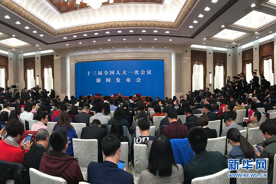 3月4日,十三屆全國人大一次會議在人民大會堂新聞發布廳舉行新聞發布會,由大會發言人張業遂就大會議程和人大工作相關的問題回答中外記者的提問。圖為新聞發布會現場。新華網/中國政府網 陳杰 攝