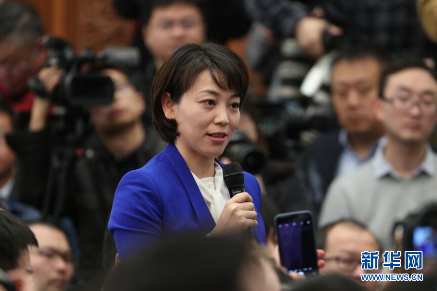 3月4日,十三屆全國人大一次會議在人民大會堂新聞發布廳舉行新聞發布會,由大會發言人張業遂就大會議程和人大工作相關的問題回答中外記者的提問。圖為中央電視臺記者提問。新華網/中國政府網 陳杰 攝