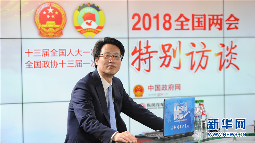 圖為,中國宏觀經濟研究院常務副院長王昌林做客新華網2018全國兩會特別訪談“新跨越兩會專家講” 新華網 張斌攝?