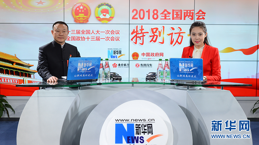 3月7日,全國人大代表、河南省信陽市文新茶葉有限責任公司董事長劉文新(左)做客新華網2018全國兩會特別訪談。新華網 楊濛攝