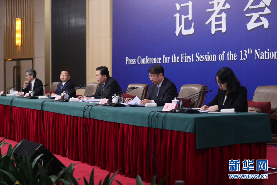 十三屆全國人大一次會議新聞中心于3月7日上午在梅地亞中心多功能廳舉行記者會,邀請財政部部長肖捷,副部長史耀斌、胡靜林就“財稅改革和財政工作”相關問題回答中外記者提問。圖為記者會現場。新華網/中國政府網?翟子赫 攝