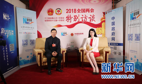 ??? 6日,第十三屆全國(guó)人大代表、江蘇揚(yáng)子江藥業(yè)集團(tuán)黨委書(shū)記、董事長(zhǎng)兼總經(jīng)理徐鏡人做客新華網(wǎng)2018全國(guó)兩會(huì)特別訪談,與網(wǎng)友在線交流。新華網(wǎng) 楊锘攝
