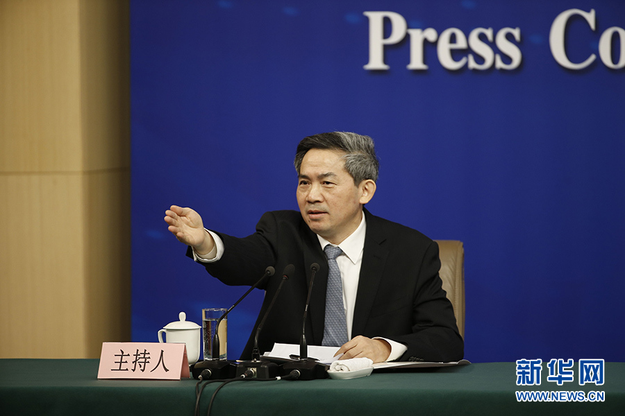 十三屆全國人大一次會議新聞中心于3月8日上午10時在梅地亞中心多功能廳舉行記者會,邀請外交部部長王毅就“中國外交政策和對外關系”回答中外記者提問。圖為記者會主持人何紹仁。新華網/中國政府網陳杰 攝
