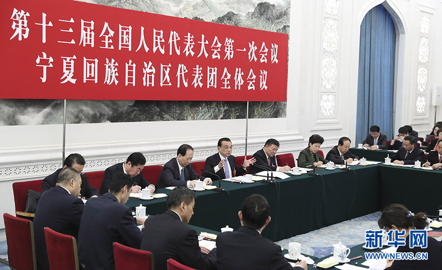 3月10日,中共中央政治局常委、國務(wù)院總理李克強(qiáng)參加十三屆全國人大一次會(huì)議寧夏代表團(tuán)的審議。 新華社記者 丁林 攝