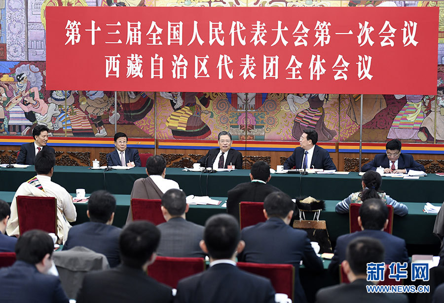 3月10日,中共中央政治局常委、中央紀(jì)委書記趙樂際參加十三屆全國人大一次會(huì)議西藏代表團(tuán)的審議。 新華社記者 張領(lǐng) 攝