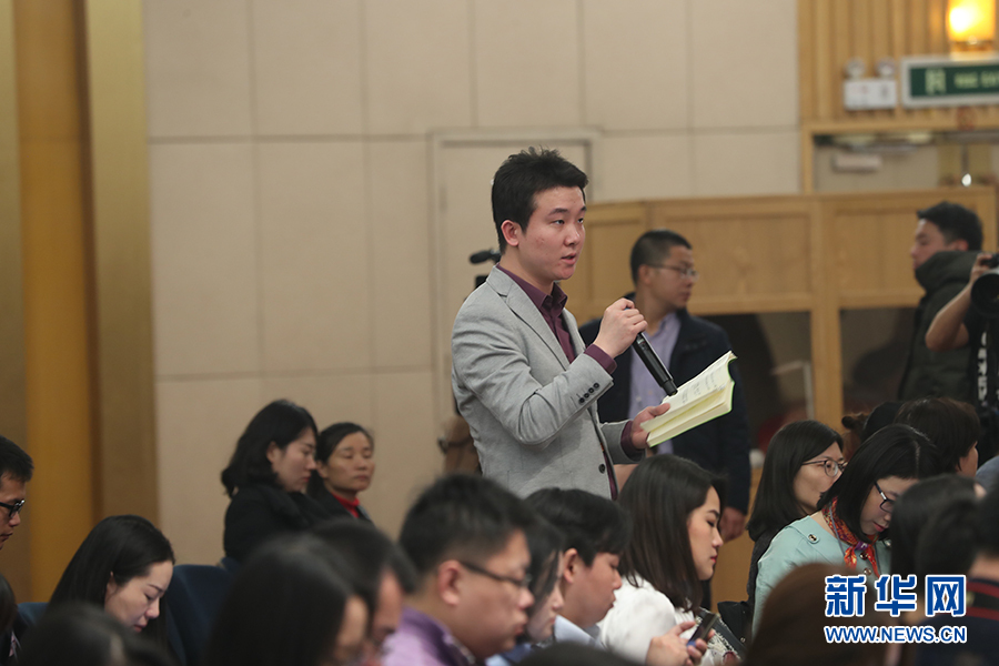 十三屆全國人大一次會議新聞中心3月10日上午10時45分在梅地亞中心多功能廳舉行記者會,邀請科技部部長萬鋼、政策法規(guī)與監(jiān)督司司長賀德方、創(chuàng)新發(fā)展司司長許倞就“加快建設創(chuàng)新型國家”相關問題回答中外記者提問。圖為中國科技產業(yè)雜志記者提問。 新華網(wǎng)/中國政府網(wǎng) 陳杰 攝