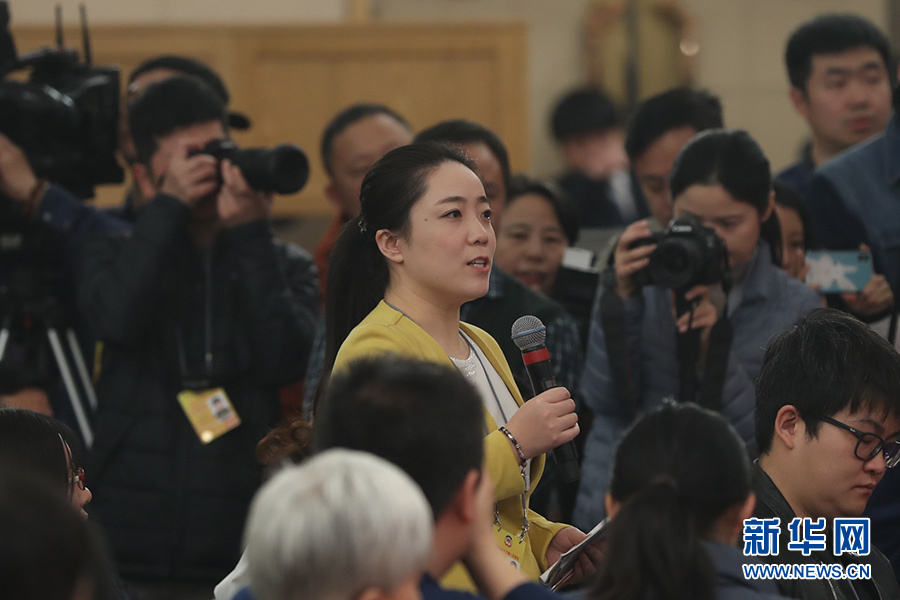 3月10日8時45分,全國政協十三屆一次會議在梅地亞中心多功能廳舉行記者會,邀請5位全國政協委員就“提高保障和改善民生水平”回答記者提問。圖為內蒙古廣播電視臺記者提問。新華網/中國政府網 翟子赫 攝