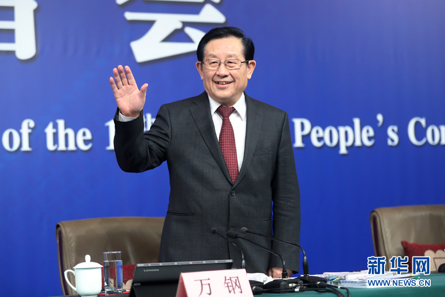 十三屆全國人大一次會(huì)議新聞中心于10日上午10時(shí)45分在梅地亞中心多功能廳舉行記者會(huì),邀請(qǐng)科技部部長(zhǎng)萬鋼、政策法規(guī)與監(jiān)督司司長(zhǎng)賀德方、創(chuàng)新發(fā)展司司長(zhǎng)許倞就“加快建設(shè)創(chuàng)新型國家”相關(guān)問題回答中外記者提問。圖為萬鋼向記者示意。新華網(wǎng)/中國政府網(wǎng) 翟子赫 攝
