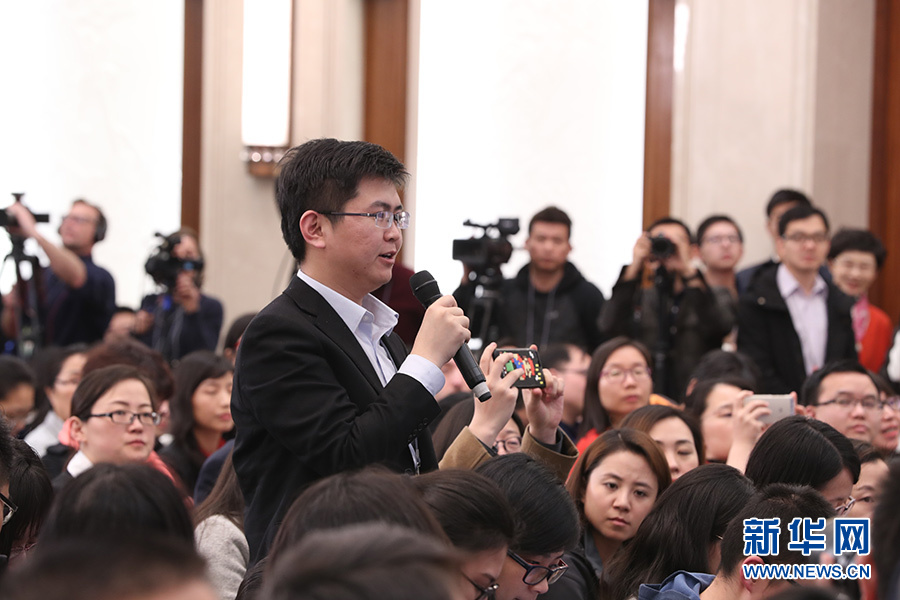 3月11日,十三屆全國(guó)人大一次會(huì)議新聞中心在人民大會(huì)堂一樓新聞發(fā)布廳舉行記者會(huì),邀請(qǐng)十三屆全國(guó)人大一次會(huì)議秘書(shū)處法案組組長(zhǎng)、全國(guó)人大常委會(huì)法工委主任沈春耀,法案組副組長(zhǎng)、全國(guó)人大常委會(huì)法工委副主任鄭淑娜就“憲法修正案”相關(guān)問(wèn)題回答中外記者提問(wèn)。圖為人民日?qǐng)?bào)記者提問(wèn)。新華網(wǎng)/中國(guó)政府網(wǎng)?陳杰 攝