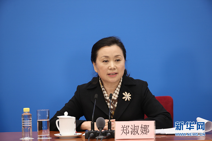 3月11日,十三屆全國人大一次會議新聞中心在人民大會堂一樓新聞發布廳舉行記者會,邀請十三屆全國人大一次會議秘書處法案組組長、全國人大常委會法工委主任沈春耀,法案組副組長、全國人大常委會法工委副主任鄭淑娜就“憲法修正案”相關問題回答中外記者提問。圖為鄭淑娜回答記者提問。新華網/中國政府網?翟子赫 攝
