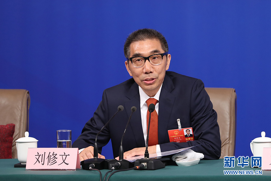 十三屆全國人大一次會議新聞中心于3月12日15時在梅地亞中心多功能廳舉行記者會,邀請十二屆全國人大財經委副主任委員尹中卿、教科文衛委副主任委員吳恒、環資委副主任委員袁駟、內司委委員鄭功成,全國人大常委會預算工委副主任劉修文、常委會辦公廳秘書局巡視員傅文杰就“人大監督工作”相關問題回答中外記者提問。圖為全國人大常委會預算工委副主任劉修文回答記者提問。新華網/中國政府網 陳杰 攝