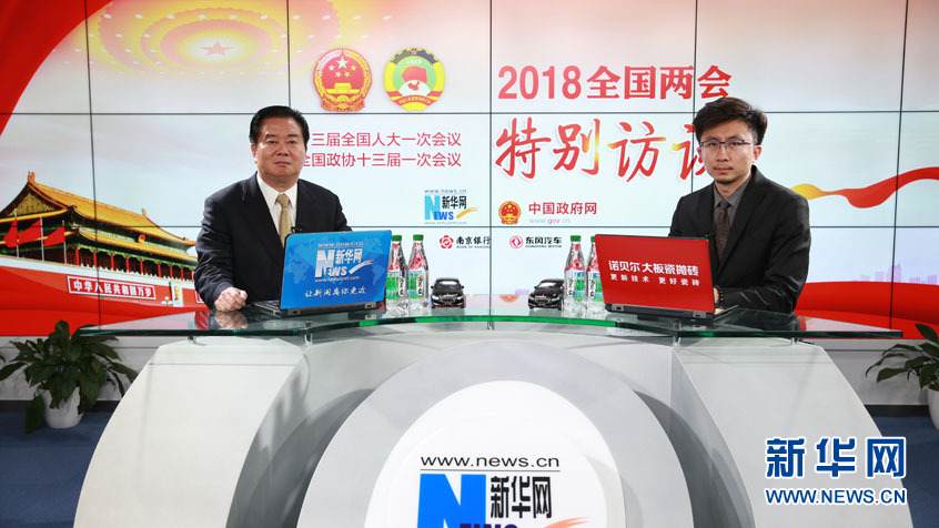 圖為全國人大代表、禹洲集團董事局主席林龍安做客新華網2018全國兩會特別訪談。新華網 楊锘攝