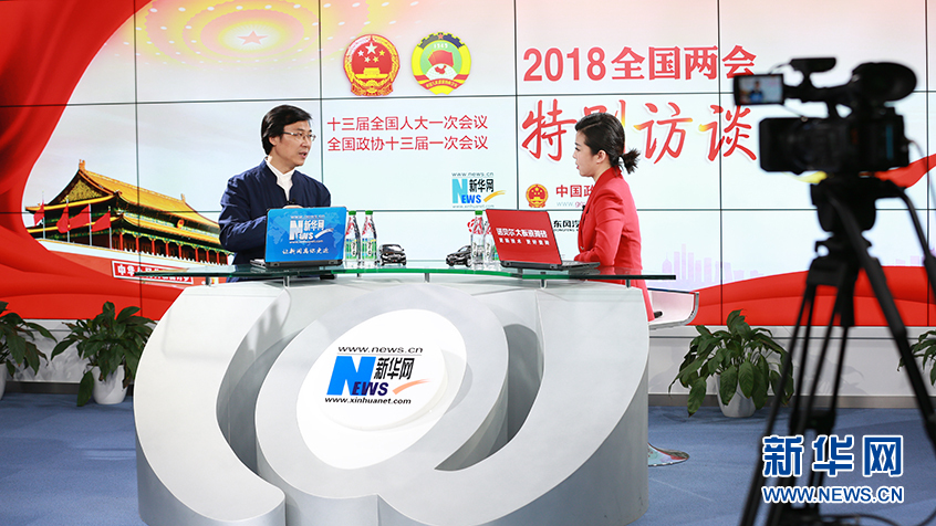 圖為14日,全國人大代表,著名男中音歌唱家、中國音樂家協會副主席、上海音樂學院副院長廖昌永做客新華網2018全國兩會特別訪談。新華網 楊锘攝