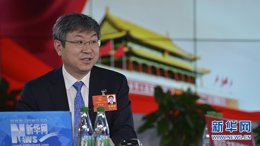 圖為全國人大代表、奇瑞汽車股份有限公司黨委書記、董事長尹同躍(左)做客新華網2018全國兩會特別訪談。新華網 李相博 攝