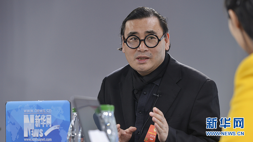 圖為全國政協委員、中國藝術研究院研究生院常務副院長劉萬鳴(左)做客新華網2018全國兩會特別訪談。新華網 李相博攝