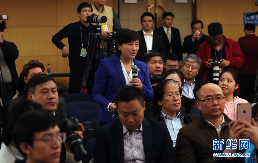 十三屆全國人大一次會議新聞中心于3月17日15時在梅地亞中心多功能廳舉行記者會,邀請環(huán)保部部長李干杰就“打好污染防治攻堅戰(zhàn)”相關(guān)問題回答中外記者提問。圖為中國國際電視臺記者提問。新華網(wǎng)/中國政府網(wǎng) 曲植 攝