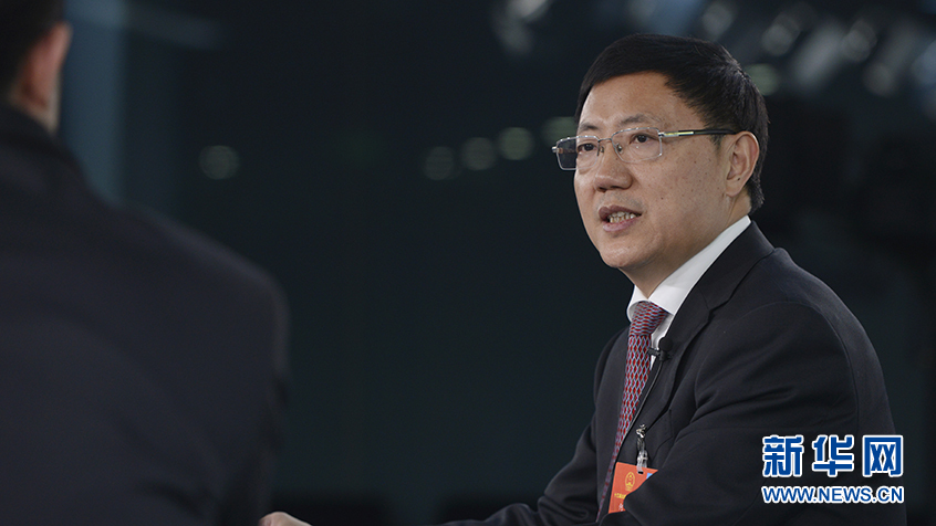 3月17日,全國人大代表,四川省巴中市委副書記、市長何平(右)做客新華網(wǎng)2018全國兩會特別訪談。新華網(wǎng) 李相博攝