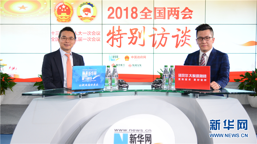 3月18日,全國人大代表、遠景創(chuàng)始人兼CEO張雷(左)做客新華網(wǎng)2018全國兩會特別訪談。新華網(wǎng) 楊濛攝