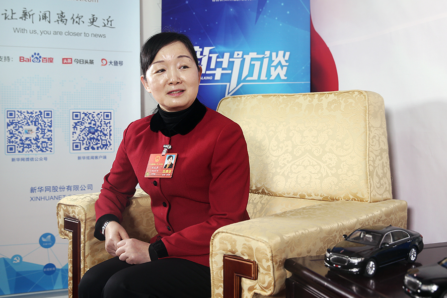 全國(guó)人大代表劉光萍到新華網(wǎng)人民大會(huì)堂兩會(huì)特別訪談間接受專訪。新華網(wǎng) 郝廣鵬 攝