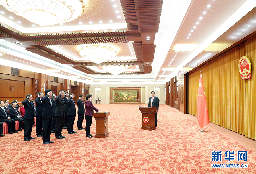 3月21日,十三屆全國(guó)人大常委會(huì)在北京人民大會(huì)堂舉行憲法宣誓儀式。全國(guó)人大常委會(huì)委員長(zhǎng)栗戰(zhàn)書主持并監(jiān)誓。 新華社記者劉衛(wèi)兵攝