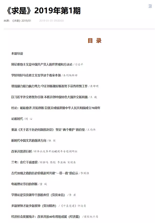 剛剛出版的2019年第1期首發(fā)了習(xí)近平總書記重要文章《辯證唯物主義是中國共產(chǎn)黨人的世界觀和方法論》,配發(fā)了學(xué)習(xí)習(xí)近平總書記重要文章的編輯部文章《學(xué)好用好馬克思主義哲學(xué)這個(gè)看家本領(lǐng)》。
