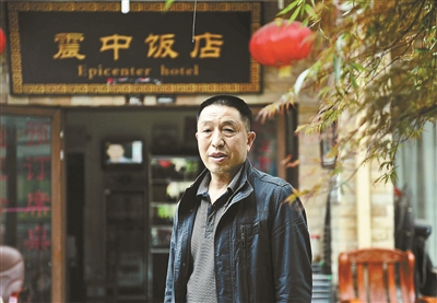 對于震中飯店來說,這樣幾百人聚在一起的畫面已經許久沒有出現。2008年5月12日,曠古未見的地震幾乎吞噬了整個映秀。剛剛在保險公司辦完事的楊云青,在逃出保險公司大門后,趕緊趕往孫子所在的學校。在滿操場彌漫的白灰中,他和幾個家長一起徒手挖出了幾個孩子,第二天清晨,他又從電廠借來吊車,把車開進了小學。一連9天,他始終和消防隊員一起奮戰在救援第一線,最終成功救出12個人。此后,楊云青“映秀好人”的名聲傳播開來。他所經營的震中飯店,也一度成為大家爭相參觀的景點。