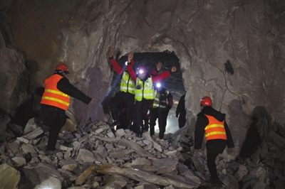 此外,施工隊也采取了一系列措施保證工人的安全。中鐵十八局安全總監(jiān)周連軍介紹,管廊內環(huán)境封閉,空氣不流通,爆破產(chǎn)生的二氧化硫氣體以及運輸車排放的尾氣容易在管廊內沉積,對施工人員產(chǎn)生危害。施工隊為此設置了通風管道,從外引入新鮮空氣,將管廊內的空氣排出。同時,每位工人在施工時都需要佩戴口罩。為了防止管廊中的巖石脫落,施工隊還特意在管廊四壁噴涂了10厘米左右的混凝土,對洞內的花崗巖進行加固。