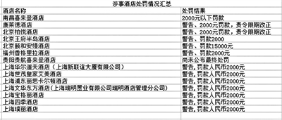 北京青年報記者調查發現,涉事的14家酒店中,12家均被處以警告和2000元或以下的罰款,唯有一家酒店被處以15000元的罰款處罰,官方表示,北京海淀區的一家涉事酒店被處15000元罰款是因為其“逾期不改正”。對于處罰金額,包括“花總”在內的不少網友都感到“不給力”,“花總”向北青報記者表示,希望此次事件可以推動相應法規與時俱進。專家表示,遭受處罰本身就對這些五星級酒店的品牌聲譽和用戶忠誠度造成了極大的損害,它們實際的損失遠比明面上的罰款要大得多。