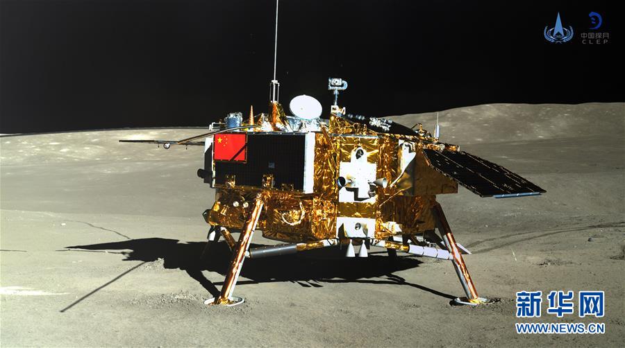 這是玉兔二號巡視器全景相機對嫦娥四號著陸器成像?!⌒氯A社發(國家航天局供圖)
