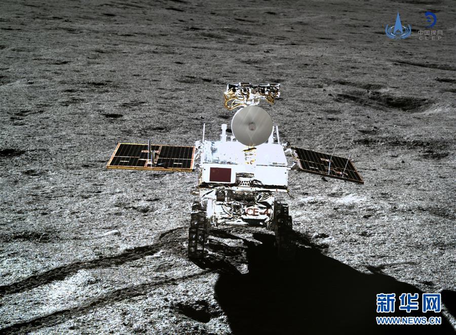 這是嫦娥四號著陸器地形地貌相機對玉兔二號巡視器成像?!⌒氯A社發(國家航天局供圖)