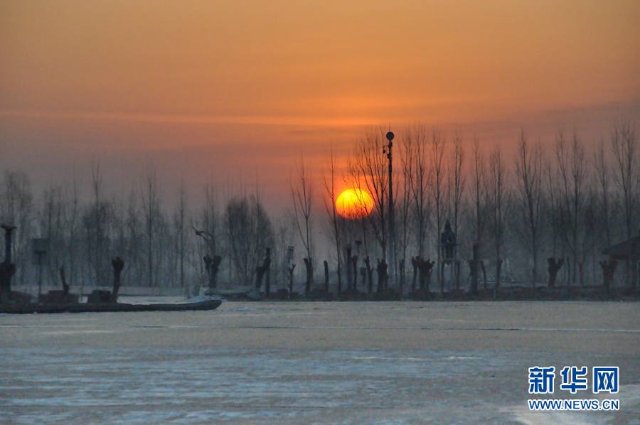 1月16日,白洋淀上朝陽(yáng)正冉冉升起。新華網(wǎng)發(fā)(馬曉 攝)