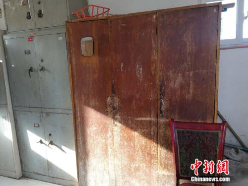 更衣室內的木質衣柜已經變成“老古董”。 中新網記者 張尼 攝