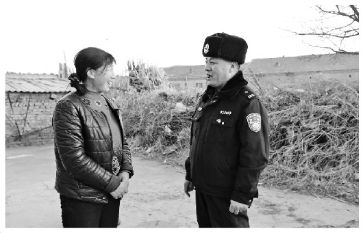小蒜溝站鐵路沿線村莊較多,村民大都有家養牲畜,巡線之余,民警們還要走街串巷,向村民們宣傳鐵路安全知識?!岸竽?今天又來到咱們家了,還是那個事,主要跟您說一下咱們家里養的牛,養的羊,一定不要去鐵路兩側放。知道吧,你忘了去年咱們簽的協議,所以說這事吧,咱們的鐵路安全很重要,一旦咱們去那放羊放牛,火車把咱牛羊撞了,咱們自己受損失?!庇捎诔D暄策壯簿€入村宣傳,民警和沿線村民都熟悉了,宣傳起來像是在嘮家常。