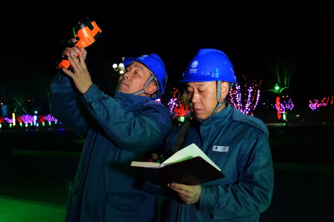 2019-01-28,山東濟南濟陽區(qū)。春節(jié)節(jié)前,電力員工對供電線路進行夜巡測溫,及時掌握線路設(shè)備的運行狀況,為全區(qū)居民春節(jié)期間可靠用電做好準(zhǔn)備。作者:CBT