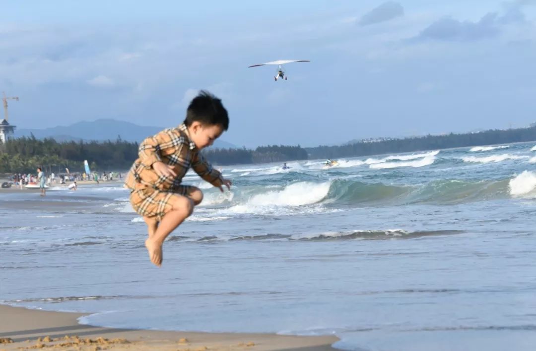 2019-02-03,海南省三亞市。一個小孩想和飛機(jī)比誰高。作者:冉建秀