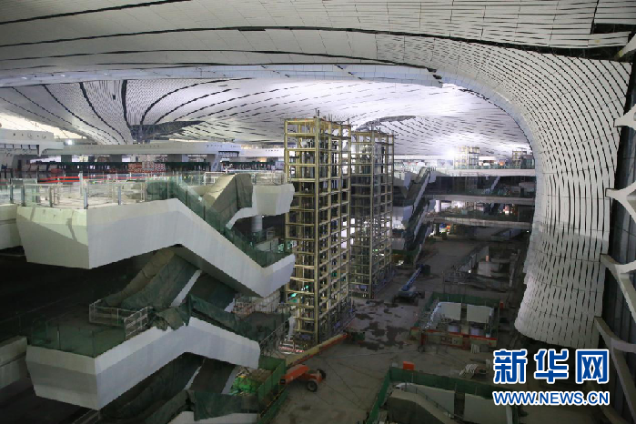 圖片說明:大興國際機場在春節期間從未停工,工人們熱火朝天地工作,以實現6月30日竣工的目標。攝影:新華網錢春弦