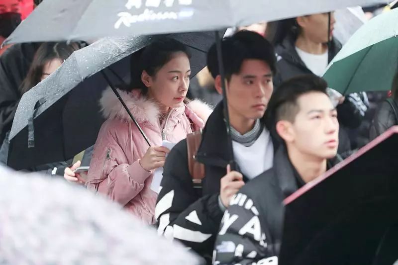 考生在雨中候考。圖片來源:上觀新聞