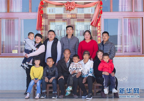云南省施甸縣興華村村民楊德茂(前排左三)一家的“全家福”(2月7日攝)。新華社發(楊董清 攝)