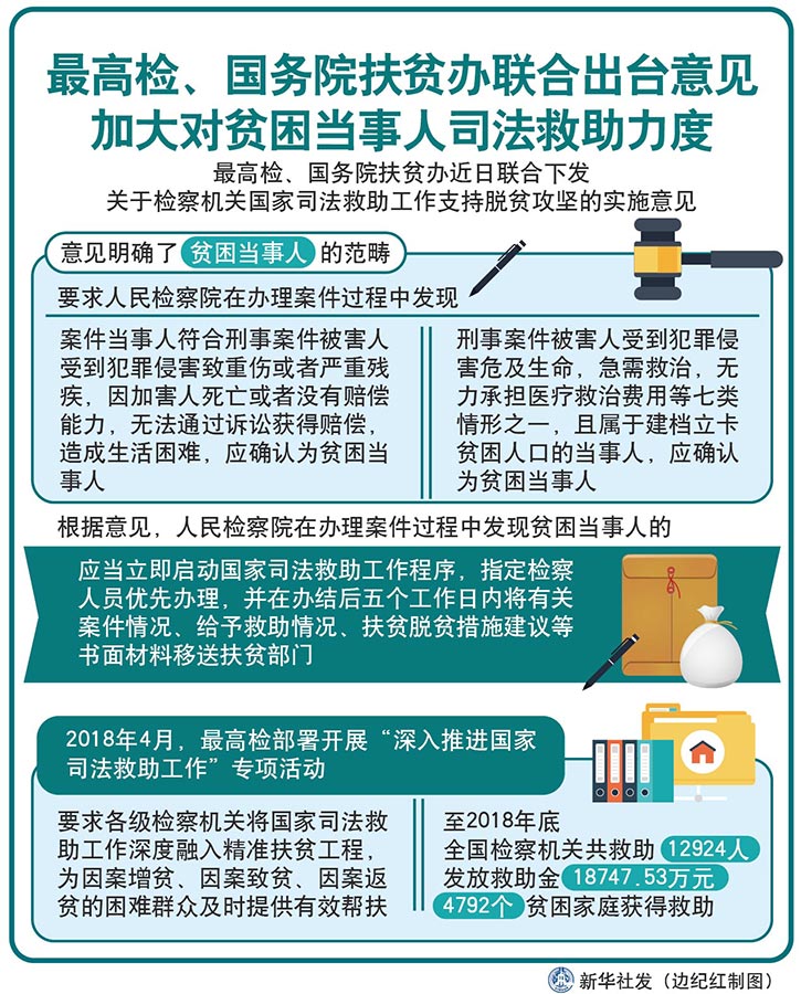 圖表:最高檢、國務院扶貧辦聯合出臺意見 加大對貧困當事人司法救助力度 新華社發 邊紀紅 制圖