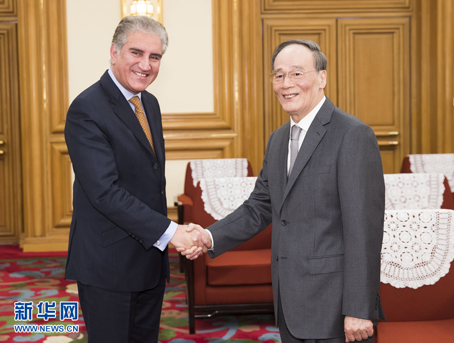 會見庫雷希時,王岐山表示,中巴是好鄰居。中巴友誼歷經(jīng)時間和國際風云變幻考驗,得到兩國人民真心擁護。近年來,兩國領(lǐng)導人往來頻繁,全天候戰(zhàn)略合作伙伴關(guān)系不斷取得新進展。在相互理解、相互信任基礎(chǔ)上建設(shè)睦鄰友好關(guān)系,營造良好周邊環(huán)境,是一國實現(xiàn)和平發(fā)展的重要條件。中方支持巴方抓住機遇、應(yīng)對挑戰(zhàn),妥善處理鄰國關(guān)系,實現(xiàn)巴基斯坦穩(wěn)定發(fā)展。希望兩國繼續(xù)深化全方位合作,推動中巴經(jīng)濟走廊等“一帶一路”重要先行先試項目取得更多成果。