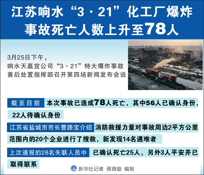 江蘇響水“3·21”化工廠爆炸事故死亡人數(shù)上升至78人-新華網(wǎng)