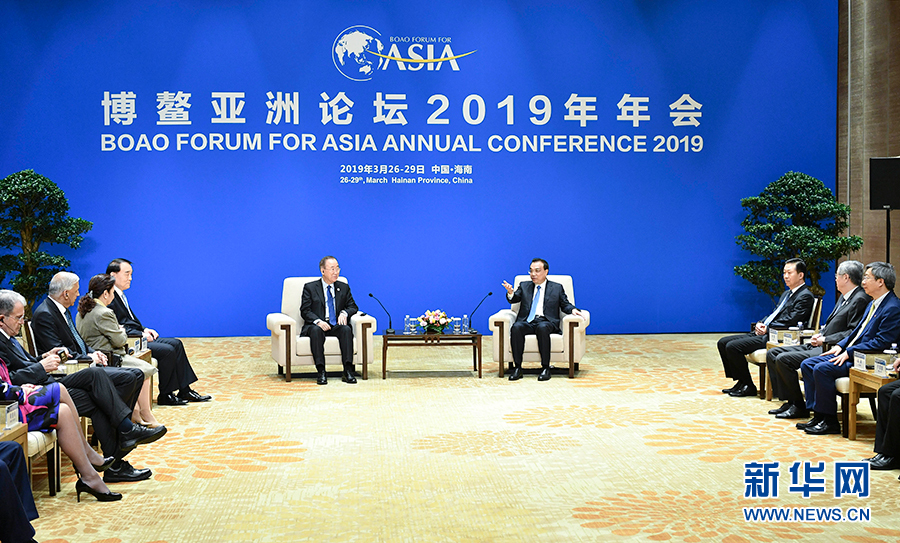 3月27日,國(guó)務(wù)院總理李克強(qiáng)在海南博鰲會(huì)見(jiàn)博鰲亞洲論壇理事長(zhǎng)潘基文和理事會(huì)部分成員。 新華社記者 殷博古 攝