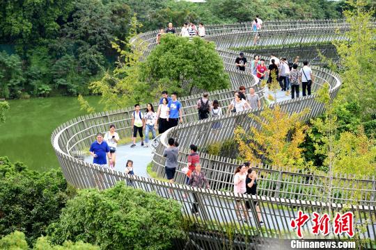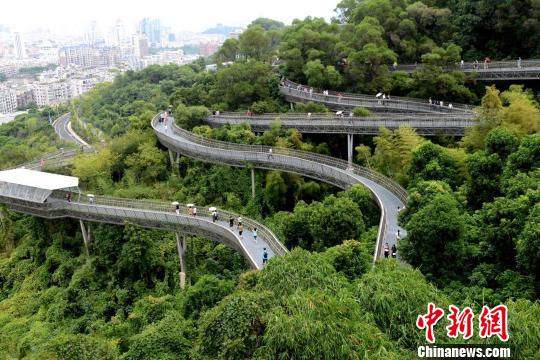 只要一有空,賴慶龍都要來逛“福道”,游山玩水、休閑健身兩不誤。“走‘福道’像是穿梭在山中,又沒有登山那么累。”賴慶龍說,“福道”的設(shè)計很新穎,鏤空的棧道可以看到山的原貌,登到高處遠(yuǎn)眺時還能看到自己的家。