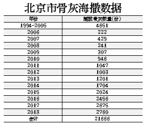 北青報(bào)記者了解到,從2014年至2016年,本市骨灰海葬量每年以20%左右的幅度增長。2018年,骨灰海葬占總安葬量比例達(dá)到3%。八寶山禮儀公司副總經(jīng)理王德東表示,去年本市撒海的骨灰有2700多份,計(jì)劃今年實(shí)現(xiàn)3000份。