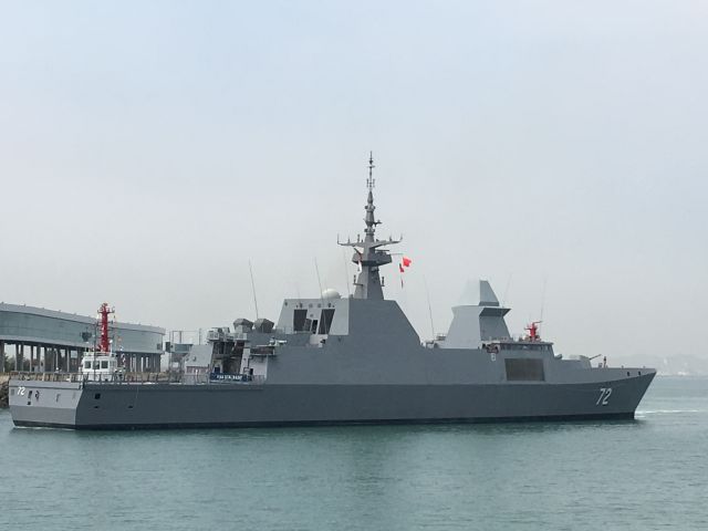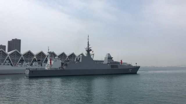 據(jù)了解,新加坡海軍“堅強”號護衛(wèi)艦(舷號72),排水量3200噸,長114.8米,寬16.3米,桅高35米,航速27節(jié)。