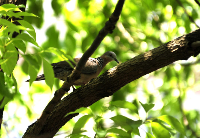 記者居住的小區(qū)里鳥也很多,陽臺下面一棵廣玉蘭樹上,一對珠頸斑鳩已經(jīng)安家了很多年。經(jīng)常看見脖子上好像戴著一圈珍珠項鏈的珠頸斑鳩,結(jié)伴到小區(qū)草地上覓食,熟悉得好像小區(qū)里的老鄰居。