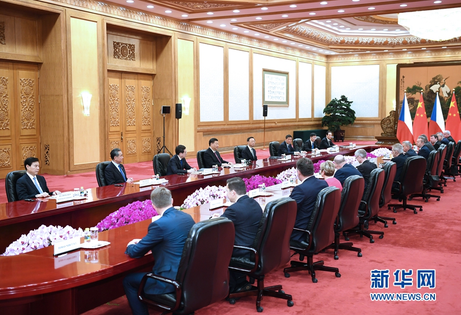 4月28日,國家主席習(xí)近平在北京人民大會堂會見捷克總統(tǒng)澤曼。 新華社記者 翟健嵐 攝